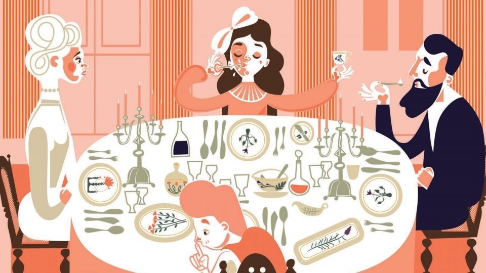 Talerzyki, widelczyki, filiżanki i nożyki