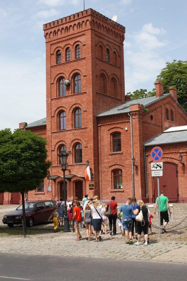 Uczestnicy lipcowych warsztatów "Pan Herbst i tajemnice Księżego Młyna" przed dawna remizą strażacką przy ul. Tymienieckiego
