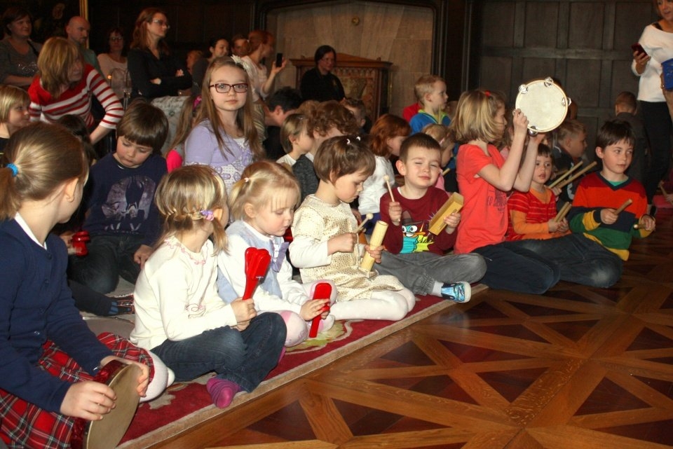 Podczas mini koncertu posłuchamy kilku utworów granych na różnych instrumentach. Poznamy także ciekawe instrumenty perkusyjne. W czasie zabaw muzyczno-rytmicznych poszukamy muzyki w otaczającym nas świecie i wykonamy samodzielnie niezwykły instrument.